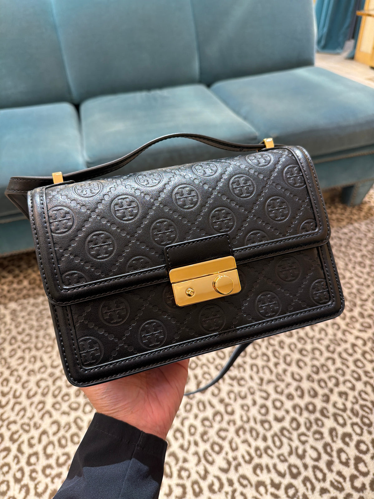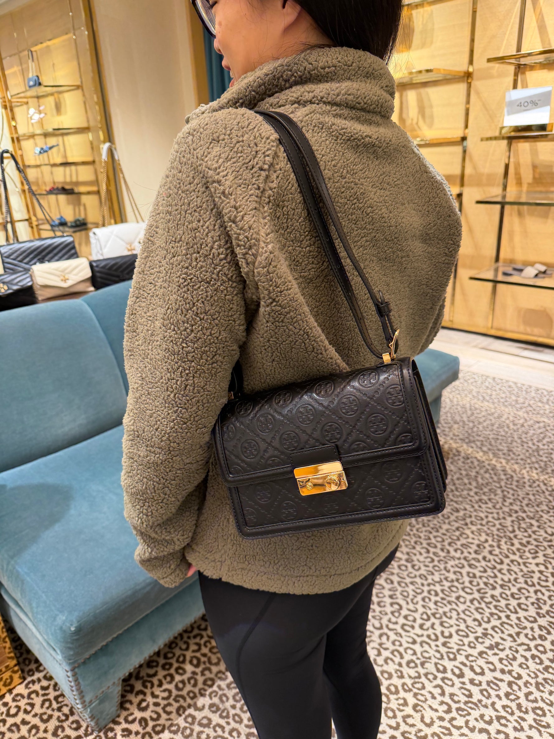 TB專櫃 T monogram 真皮郵差包 23 黑色
