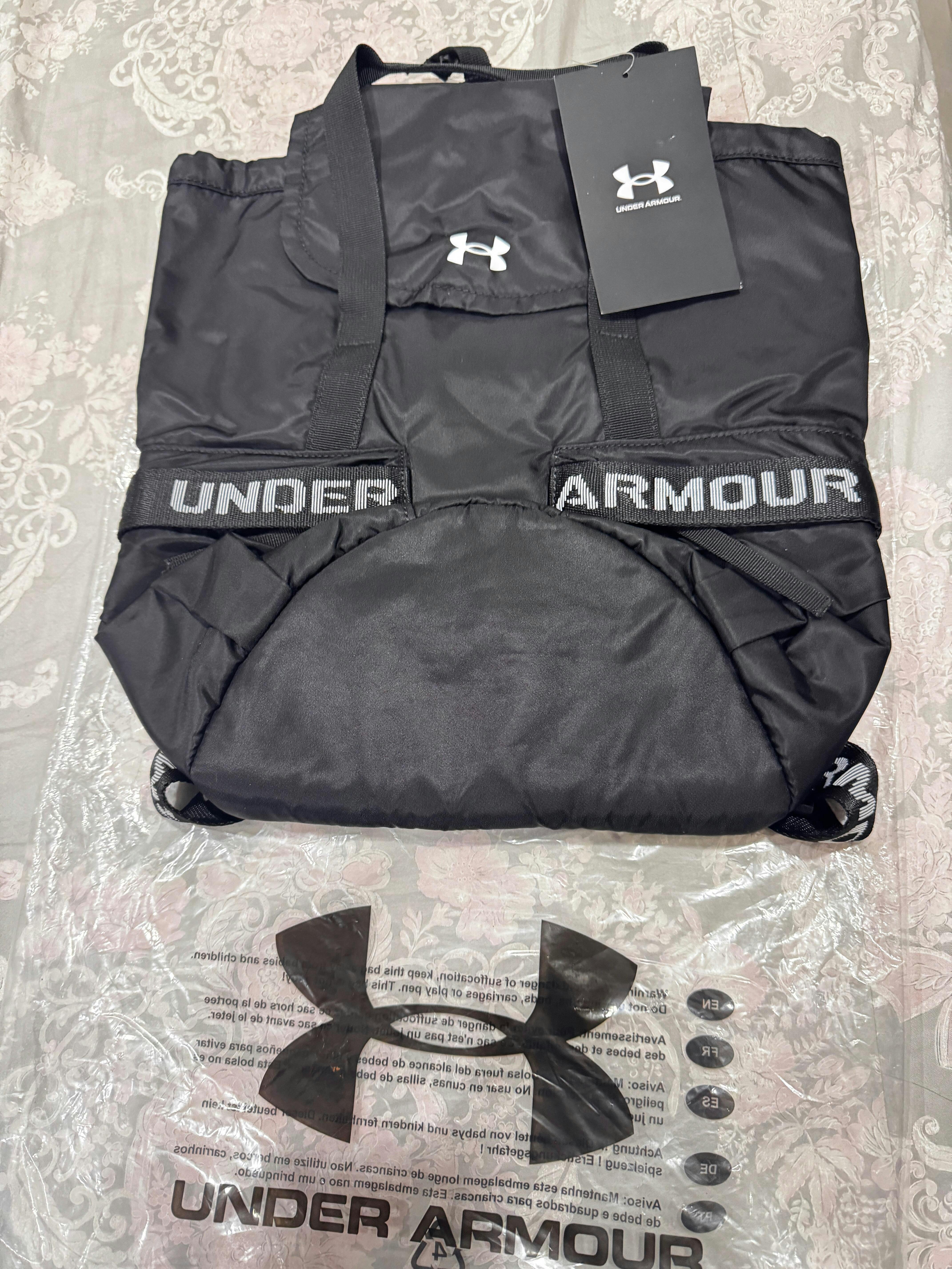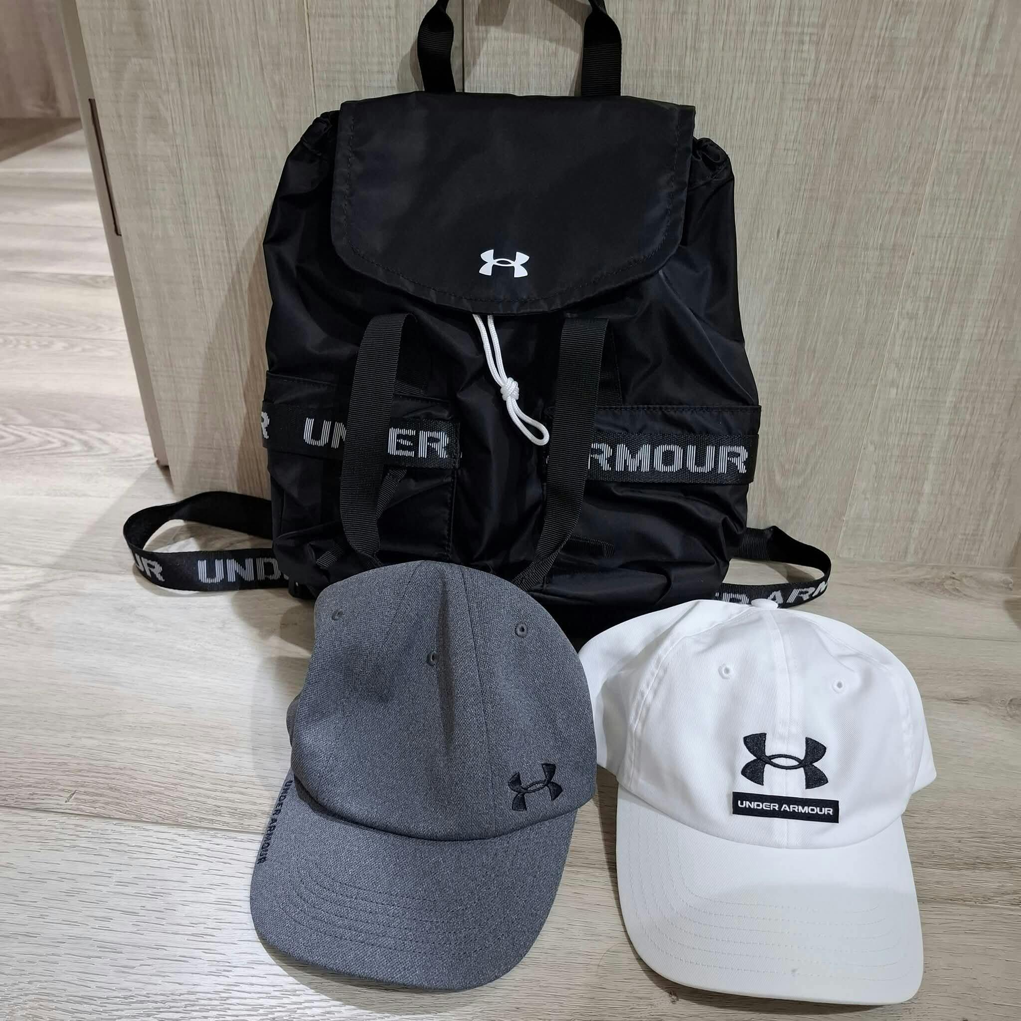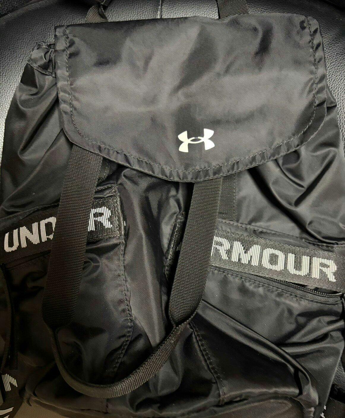 UA Favorite 後背包,黑色的後肩帶搭配白色UA字樣,簡單設計,日常上班或郊遊旅行都很適合背,重點是容量大,很好裝而且尼龍材質包包很輕。 直播中Ann背起來覺得也太可愛了,立馬就放到購物車結帳了。 包包不嫌多,價格也甜甜🥰