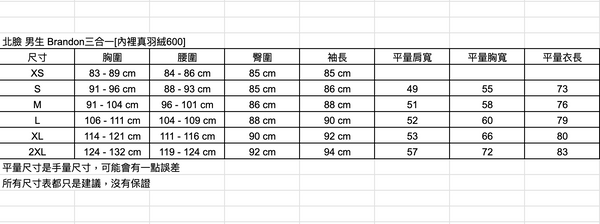 北臉 男生 Brandon三合一[內裡真羽絨600]