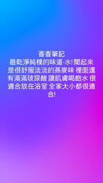Ann香香小筆記:最乾淨純樸的味道-水! 聞起來是很舒服淡淡的燕麥味 裡面還有滿滿玻尿酸 讓肌膚喝飽水 很適合放在浴室 全家大小都很適合!
